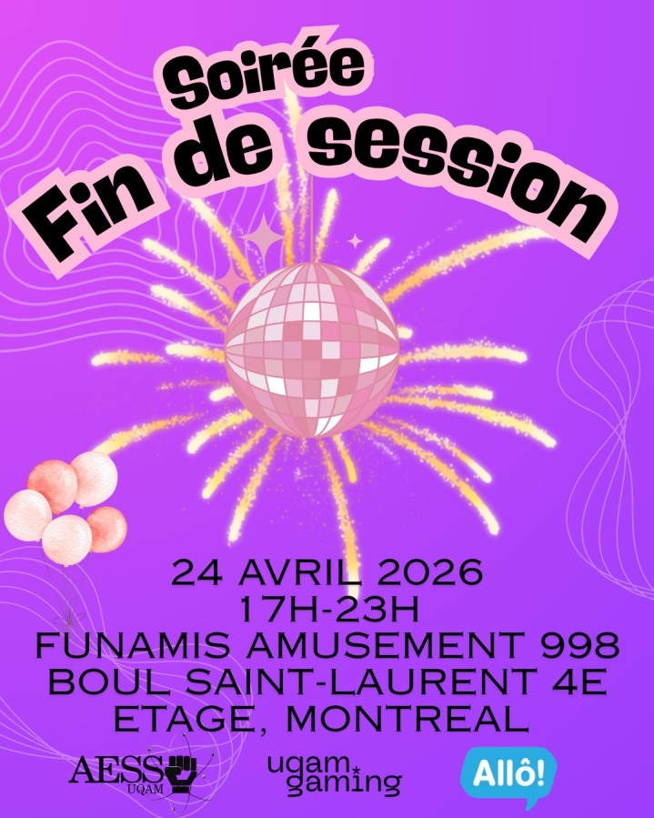 Rejoignez-nous lors de cette soirée de fin de session avec le programme Allô et le comité de jeux de l’AESS !